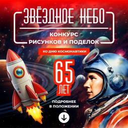 МАУДО «ЦДТ» приглашает обучающихся от 5 до 17 лет принять участие в конкурсе рисунков и поделок, посвящённом 65-летию первого полёта человека в космос. Номинации: рисунки, компьютерная графика, Lego-поделки. Заявки принимаются до 6 апреля.
