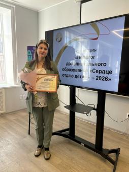 Педагог ЦДТ Ирина Владимировна Вязинина победила в муниципальном этапе конкурса «Сердце отдаю детям – 2026». Под девизом «Большая любовь к маленькому городу» она увлекла школьников краеведением и историей Старой Руссы. Желаем победы на областном этапе!